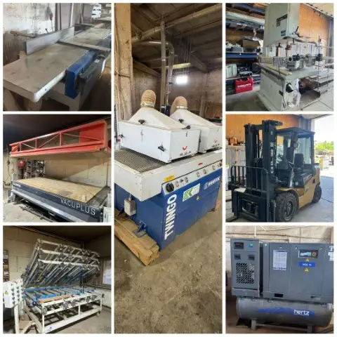 Vand set complet de utilaje pentru atelier de tamplarie, toate in stare perfecta de functionare, intretinute cu grija. Echipamentele sunt ideale pentru productie profesionala de mobilier, usi, ferestre, panouri etc. Se vand atat individual, cat si la pachet.